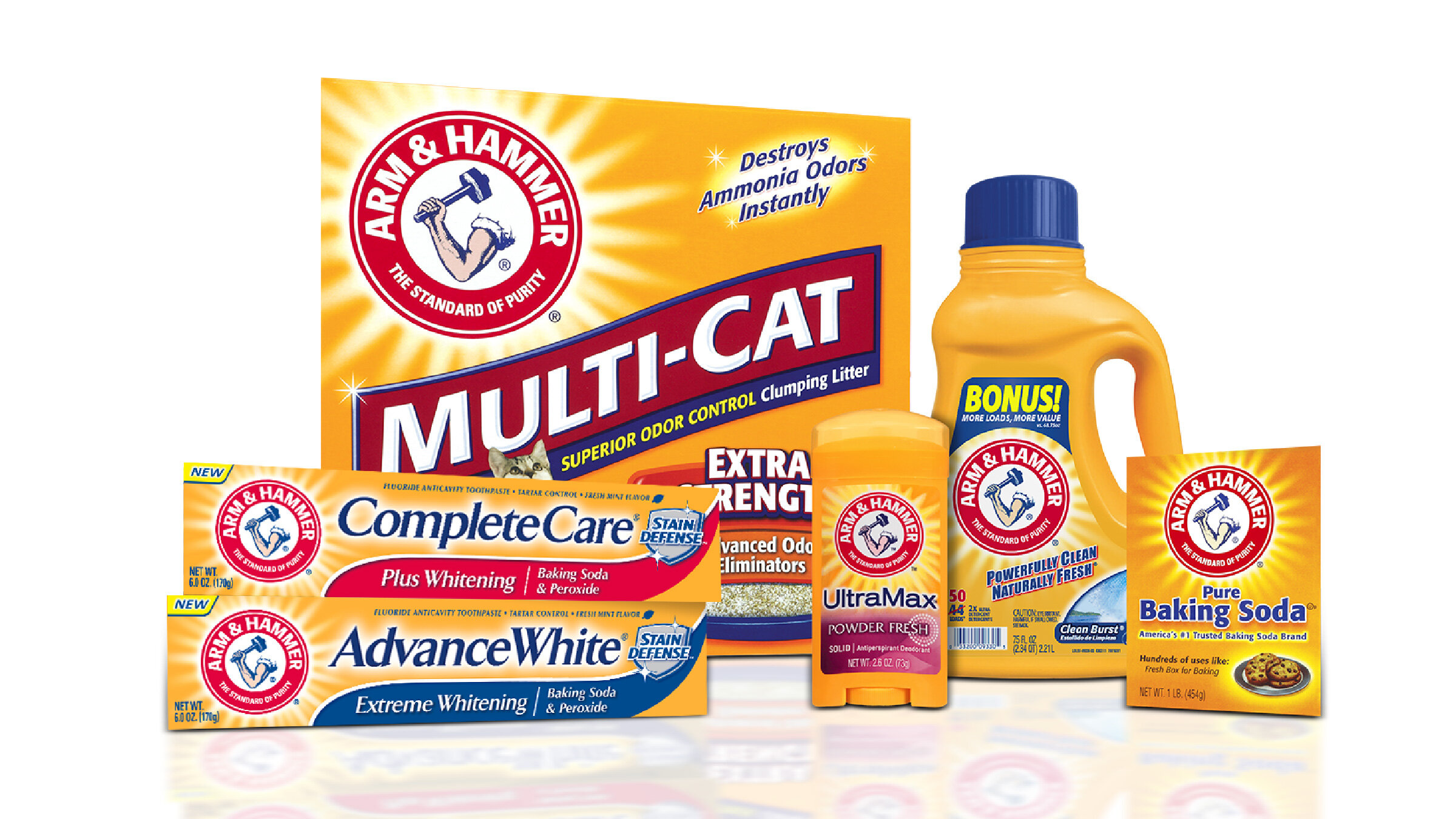 Arm & Hammer was founded in 1874 on the humble power of baking soda and is one of America’s greatest brands. Over the years consumers championed this miraculous powder to do a multitude of household tasks. Eventually the brand converted these homemade formulas to real products such as: toothpaste, laundry detergent, deodorant, and a dozen other categories. The wide range of categories extended the brand so broadly that it diluted the masterbrand visual equity.