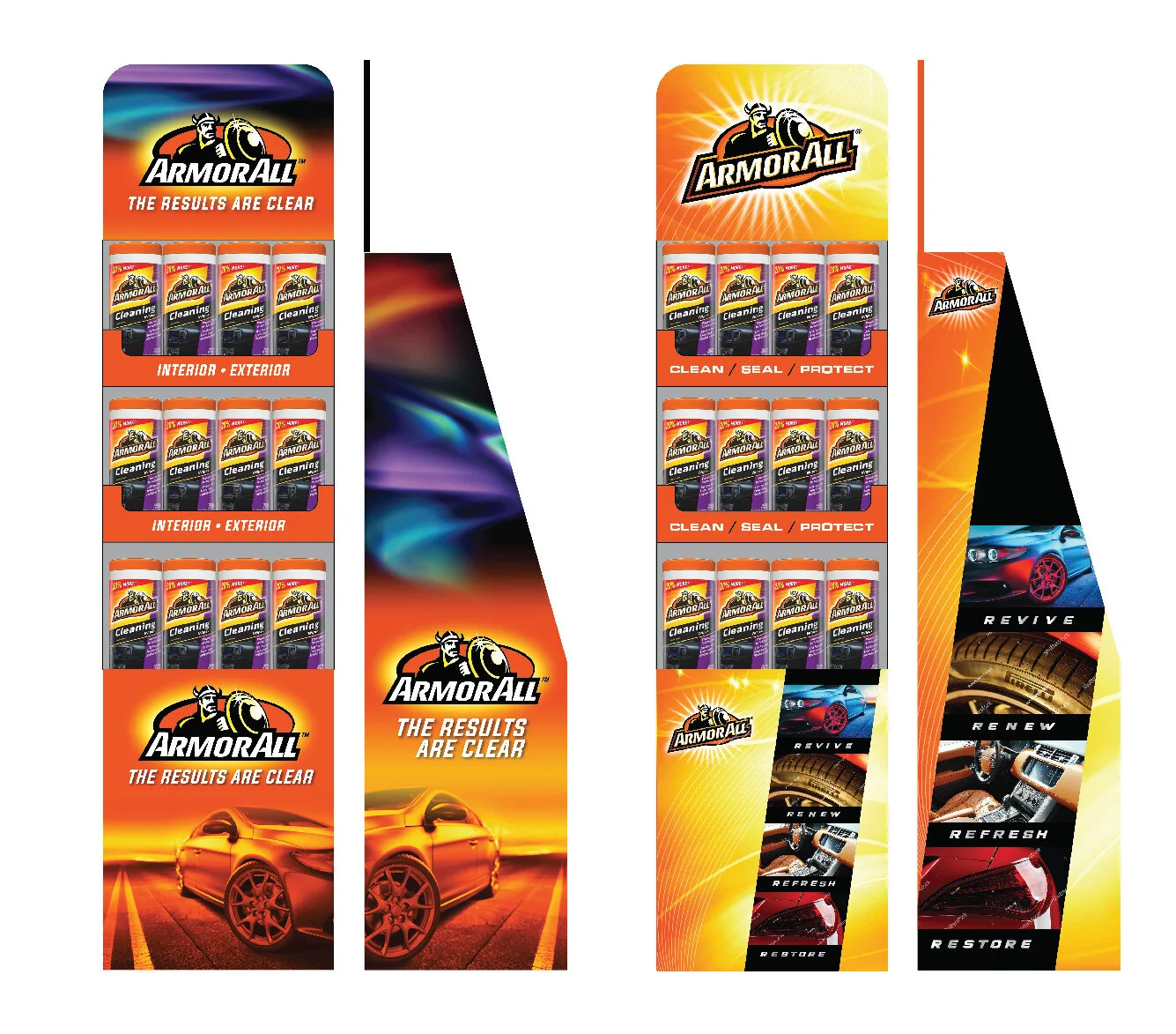 A national display program was developed by BrandSmyth to house all manner of Armor All products. The design exploration focused on how to best express the core of what Armor All stood for.